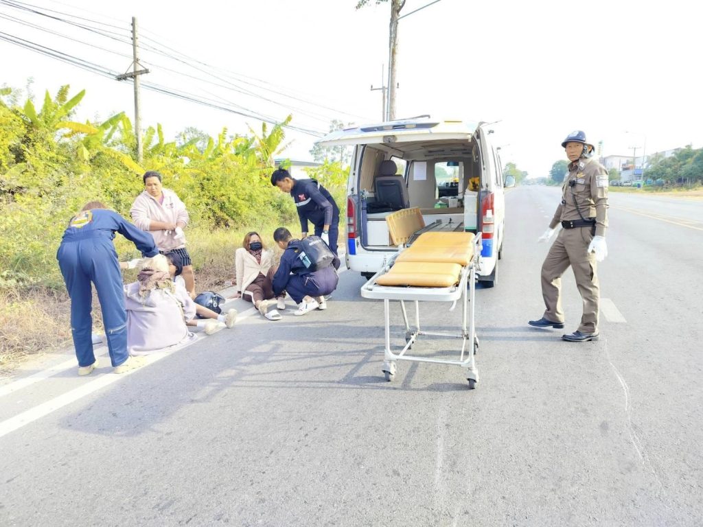 ร.ต.อ.ชญานนท์ สมอ่อน รอง สว.(สอบสวน) / ร้อยเวร 30 พร้อมผู้ช่วย ว.4 เหตุรถจักรยานยนต์เฉี่ยวชนสุนัข ที่บริเวณ หน้าโรงสีใหญ่ ถนนบรบือ-นาเชือก มีผู้บาดเจ็บ 3 ราย