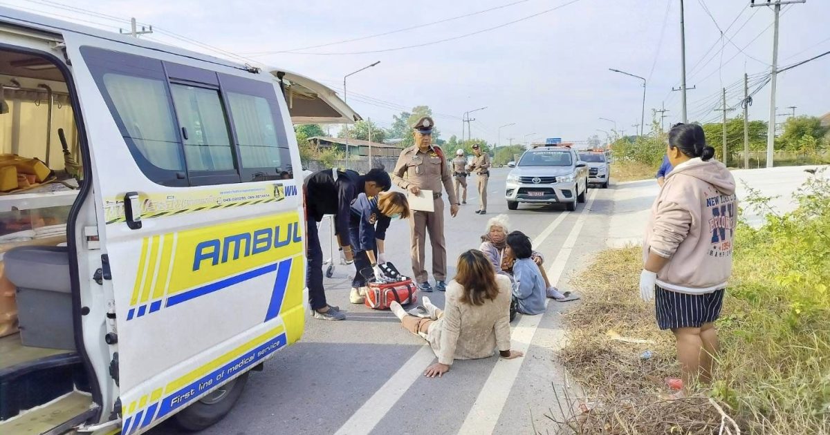 ร.ต.อ.ชญานนท์ สมอ่อน รอง สว.(สอบสวน) / ร้อยเวร 30 พร้อมผู้ช่วย ว.4 เหตุรถจักรยานยนต์เฉี่ยวชนสุนัข ที่บริเวณ หน้าโรงสีใหญ่ ถนนบรบือ-นาเชือก มีผู้บาดเจ็บ 3 ราย