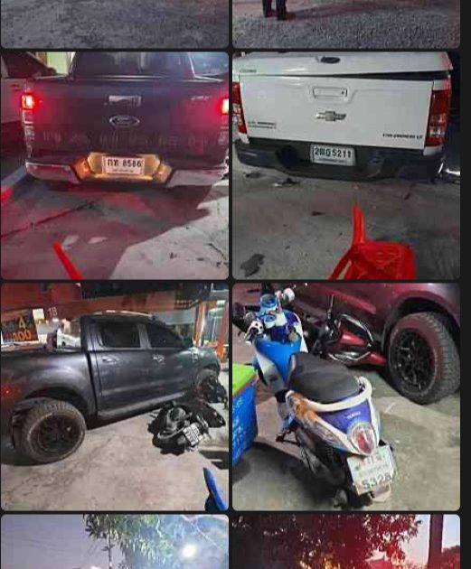 ว.4 เหตุ ว.40 รถยนต์กระบะ+รถยนต์กระบะ+จยย. +จยย ไม่มีผู้ได้รับบาดเจ็บ รถคันเกิดอุบัติเหตุ นำเก็บรักษา สภ.บรบือ
