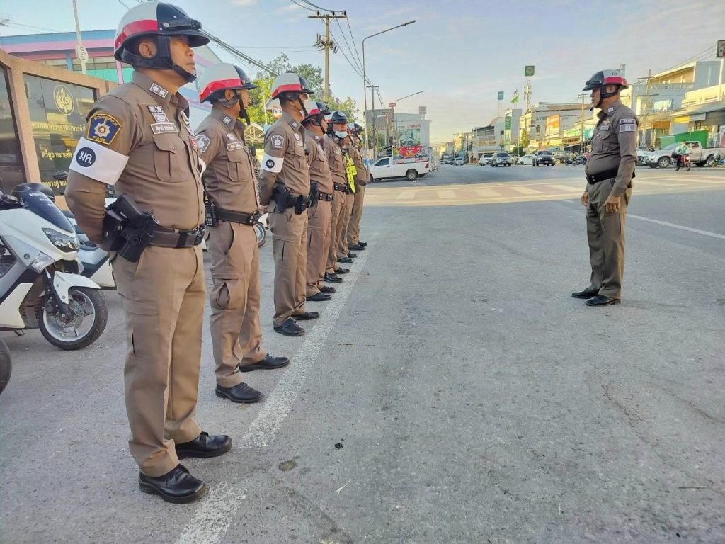 ร.ต.อ.ชัชวาลย์ ไชยช่อฟ้า รอง สว.จร.สภ.บรบือ เรียกแถวชุดจราจร โดยชี้แจงนโยบายจราจร ดังนี้