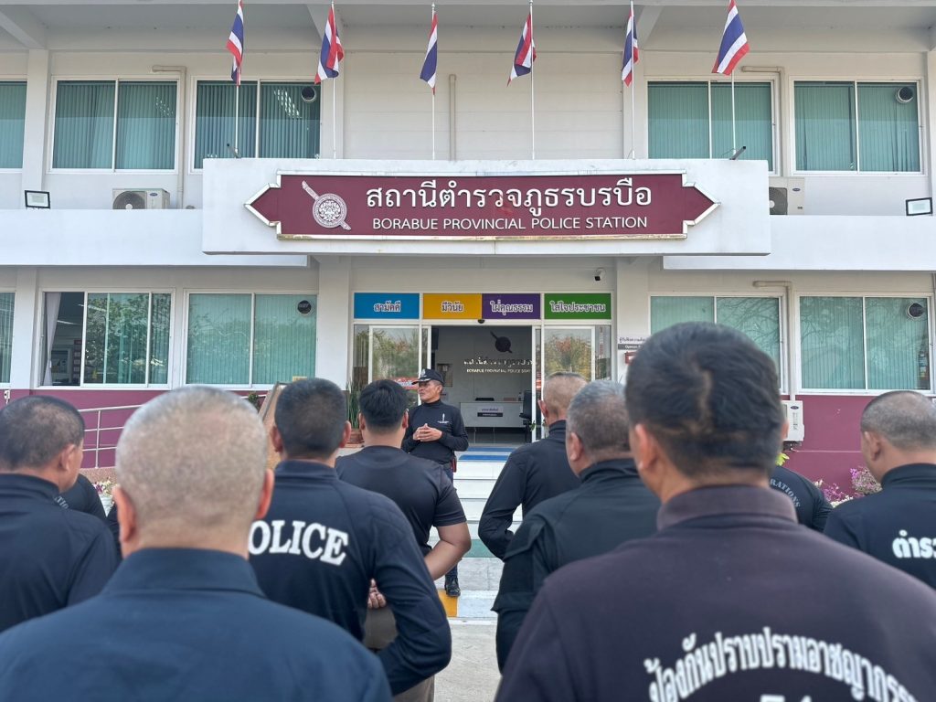 พ.ต.อ.นพดล ศรีชะตา ผกก.สภ.บรบือ,พ.ต.ต.นรากร แก้วสีขาว สวป.ฯ พร้อมด้วยข้าราชการตำรวจในสังกัด