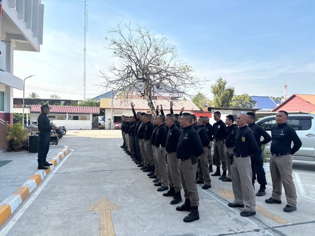ร่วมทบทวนการฝึกยุทธวิธีตำรวจ ประจำสัปดาห์ เพื่อเป็นการปรับปรุงเสริมสร้างบุคลิกภาพ และเพิ่มประสิทธิภาพในการออกปฎิบัติหน้าที่ตำรวจ