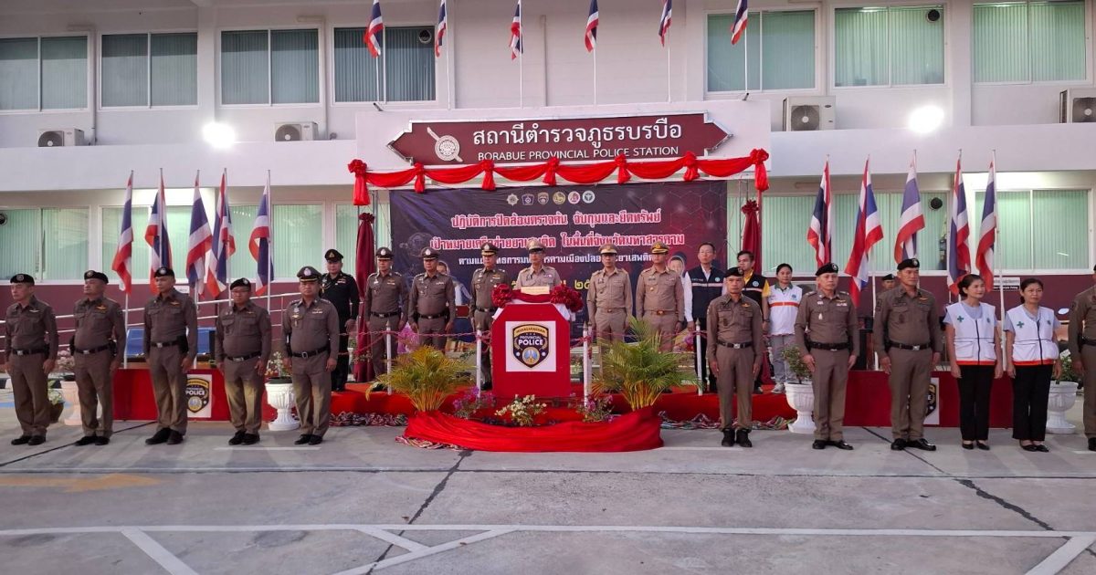 พ.ต.อ.นพดล ศรีชะตา ผกก.สภ.บรบือ กล่าวรายงาน หัวหน้าสถานีตำรวจและข้าราชการตำรวจ สภ.บรบือ , สภ.วาปีปทุมสภ.นาเชือก , สภ.นาดูน , สภ.กุดรัง , สภ.นาข่า , สภ.กำพี้ , สภ.ปอพาน , กองกำกับการสืบสวน ภ.จว.มหาสารคาม , หัวหน้าส่วนราชการและภาคีเครือข่าย