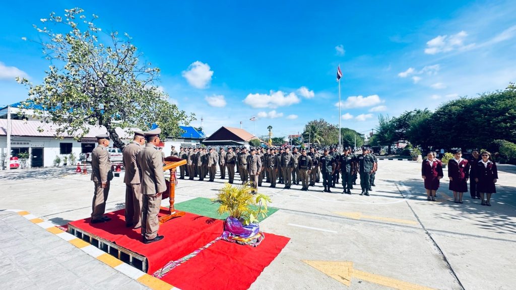 โดยมีพิธีไหว้พระพุทธรูปประจำ สภ. , อ่านสารจากท่าน พล.ต.อ.กิตติ์รัฐ พันธุ์เพ็ชร์ ผบ.ตร. , กล่าวคำสัตย์ปฏิญาณ , กล่าวอุดมคติตำรวจ , ร้องเพลงมาร์ชตำรวจ , มอบประกาศเกียรติคุณตำรวจปฏิบัติงานดีเด่นประจำปี , ถวายภัตตาหาร และจตุปัจจัยไทยธรรม แต่พระภิกษุสงฆ์